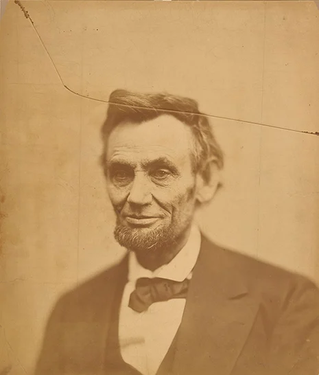 What is it? An 1865 photograph of Abraham Lincoln (1865) by Alexander Gardner with a crack through it.