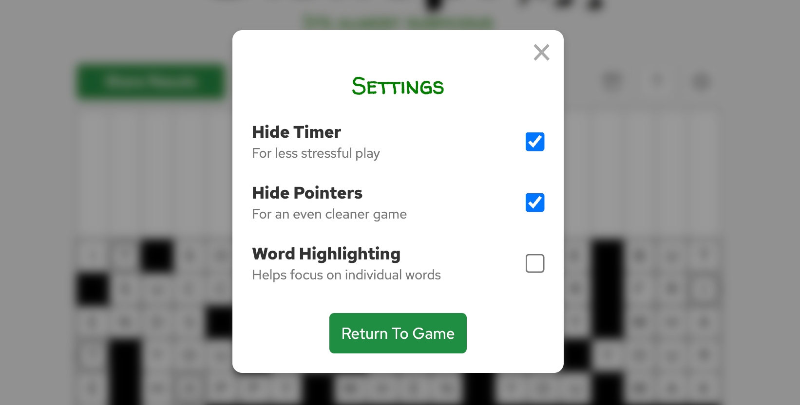 Initially, once it was out in the world, I had a lot of bug reports that I was squashing quickly. But I also began to get a lot of feature requests. I added a “settings” widget for some of the popular requests, like hiding the timer since some people found it stressful. I also added a toggle to highlight the current word you’re at, to help people understand how words wrap to the next line.