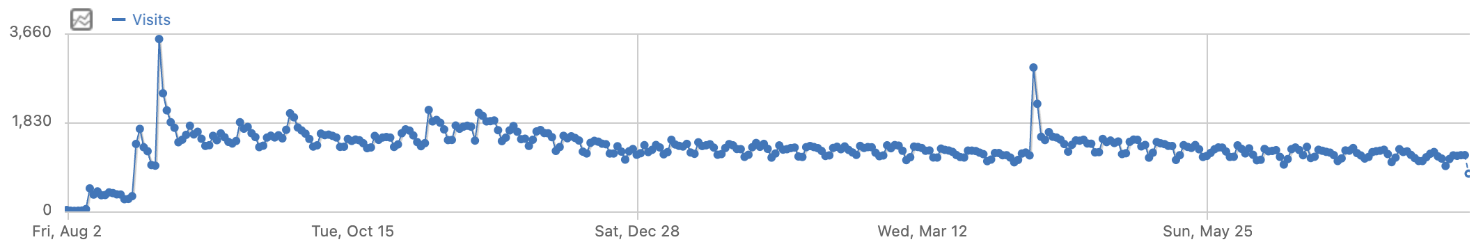 On the busiest day, 3,544 people played Gisnep. That was just a few weeks after launch, when Tom Scott mentioned Gisnep in his newsletter. I’ve had a couple similar peaks, but more typically I have 1,300 to 1,500 daily visitors.