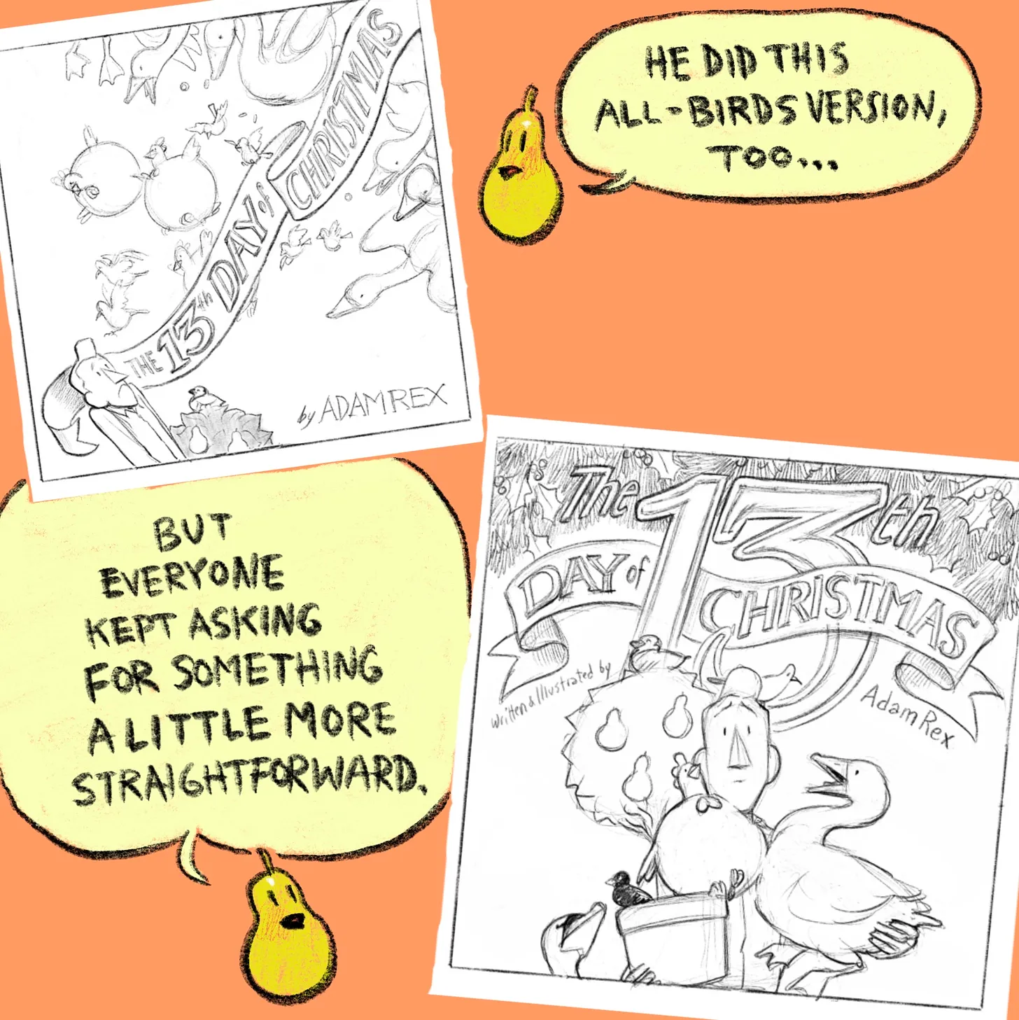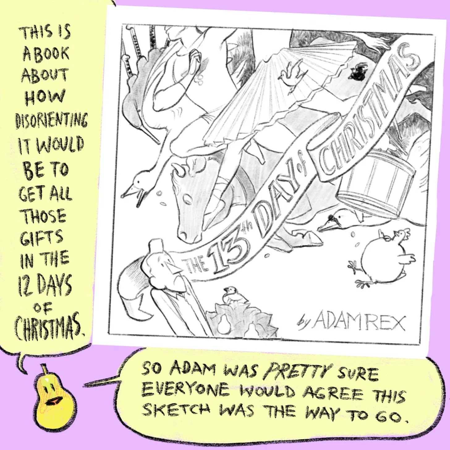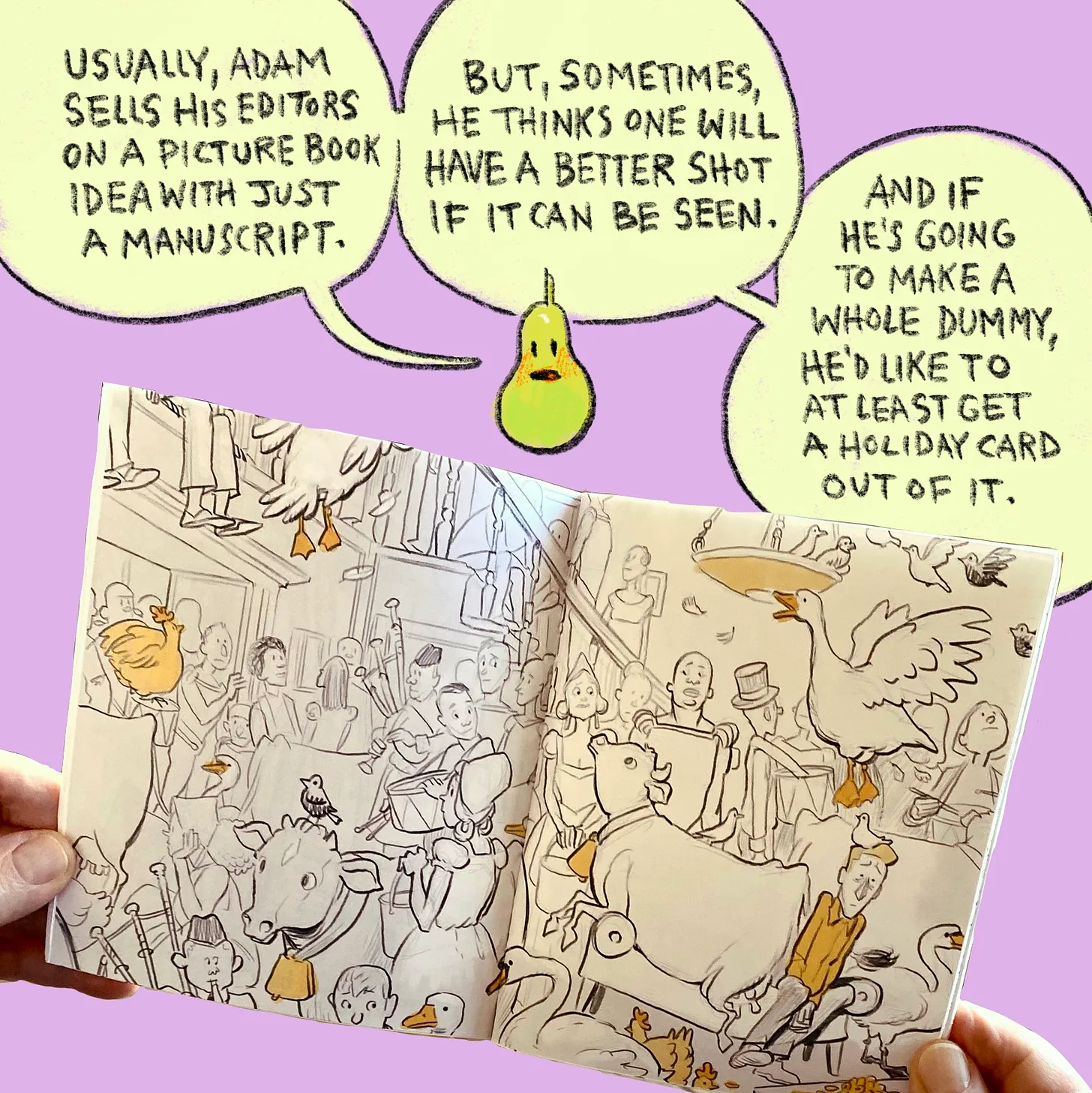 I thought it was a really good promo. It shows a lot of the work that goes into writing a picture book behind the scenes – the character sketches, the cover designs, the legal considerations, etc – all with Adam’s wit and style.