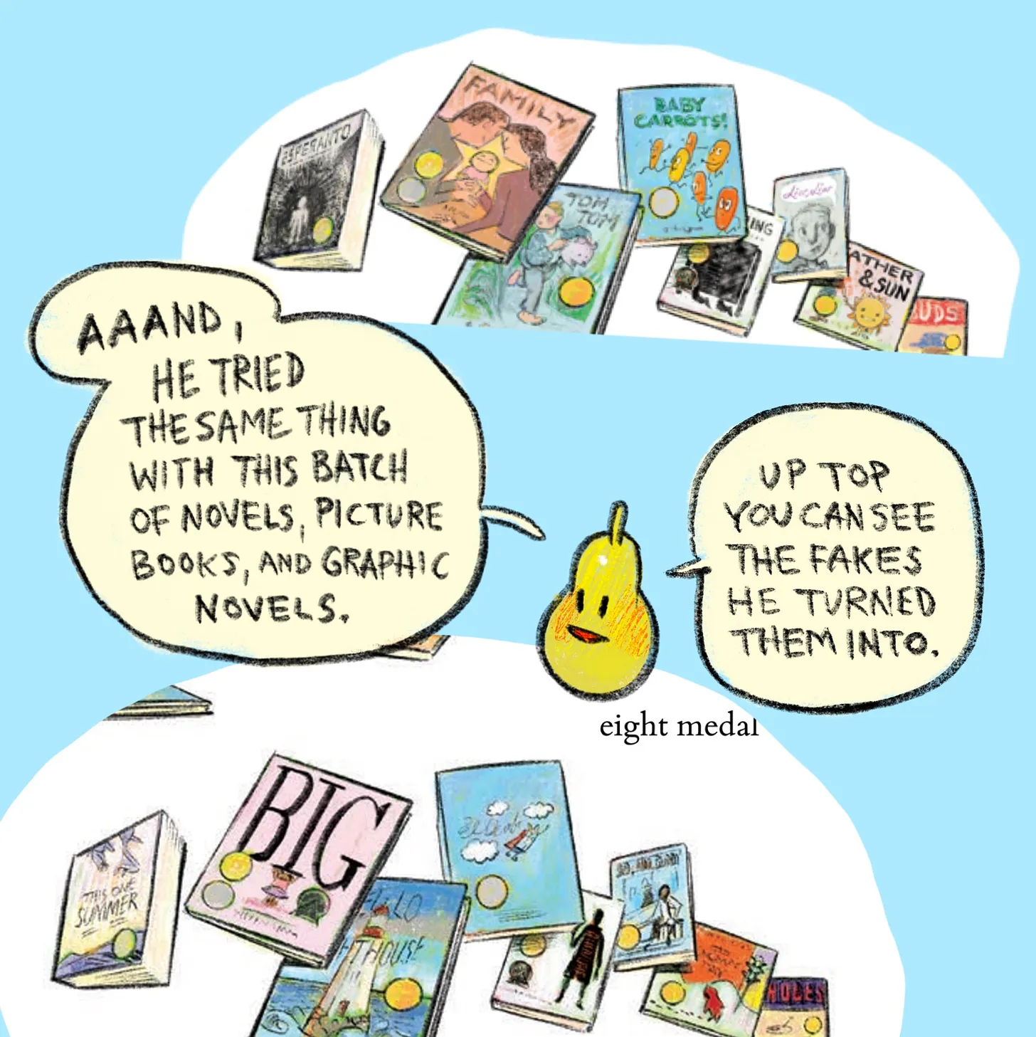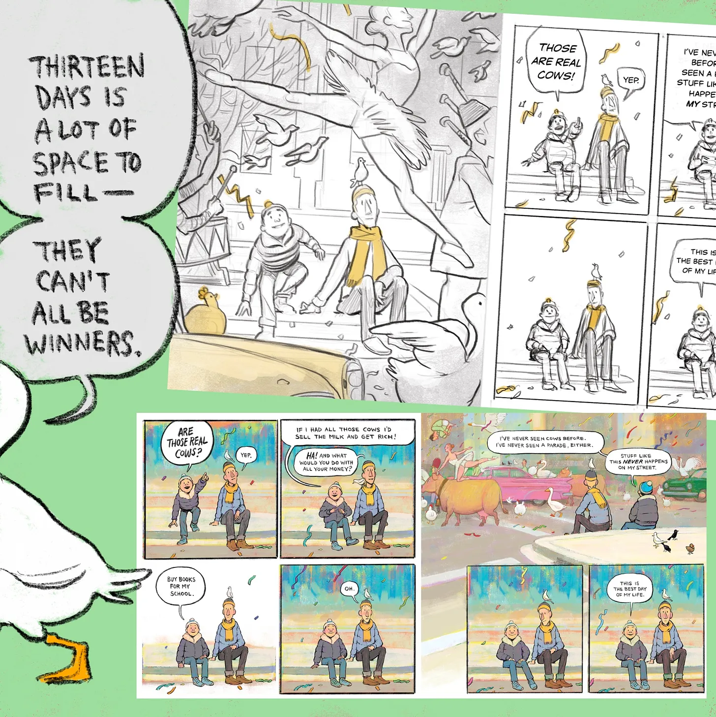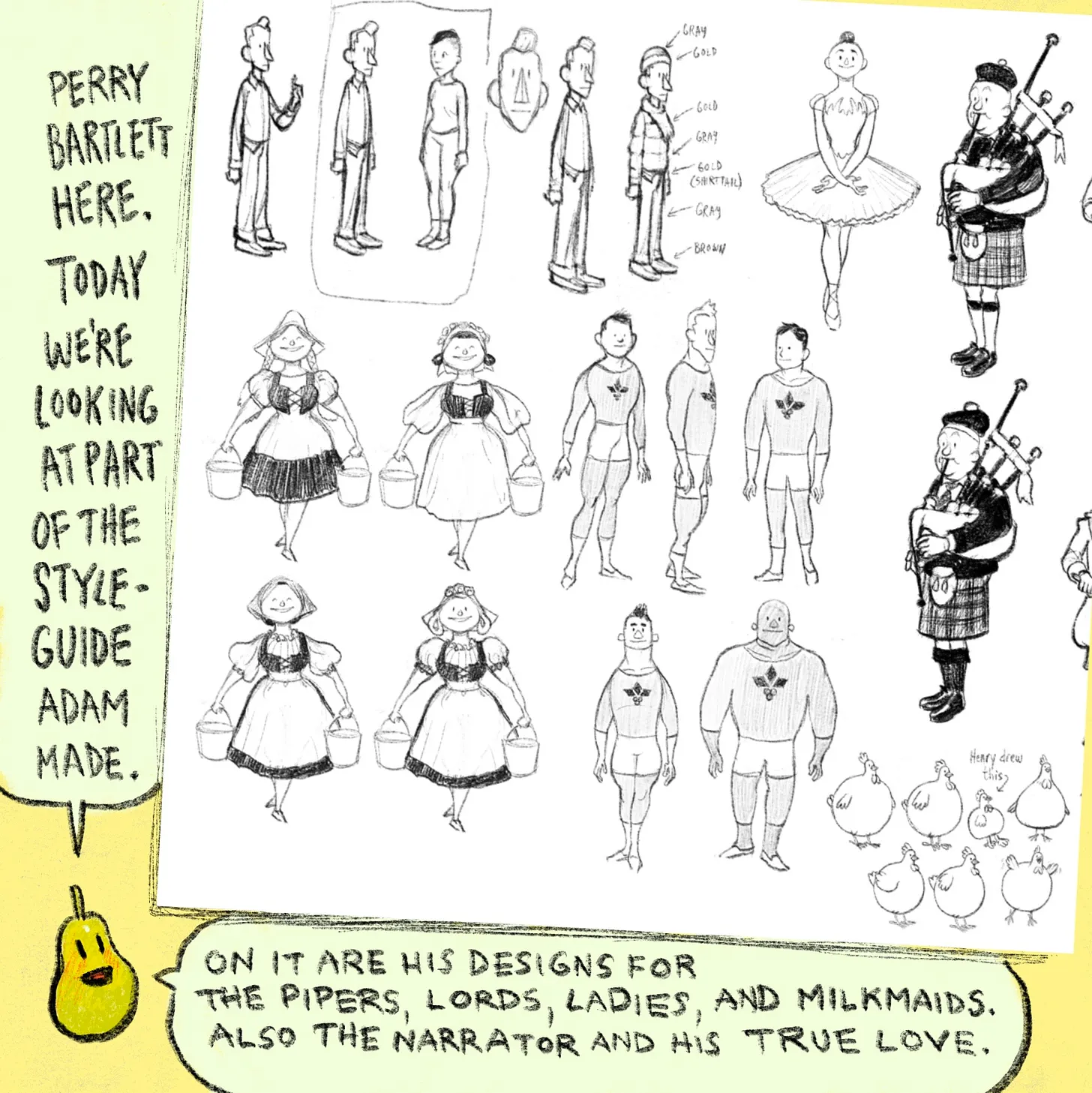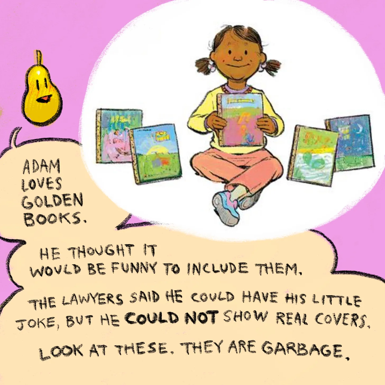 I thought it was a really good promo. It shows a lot of the work that goes into writing a picture book behind the scenes – the character sketches, the cover designs, the legal considerations, etc – all with Adam’s wit and style.