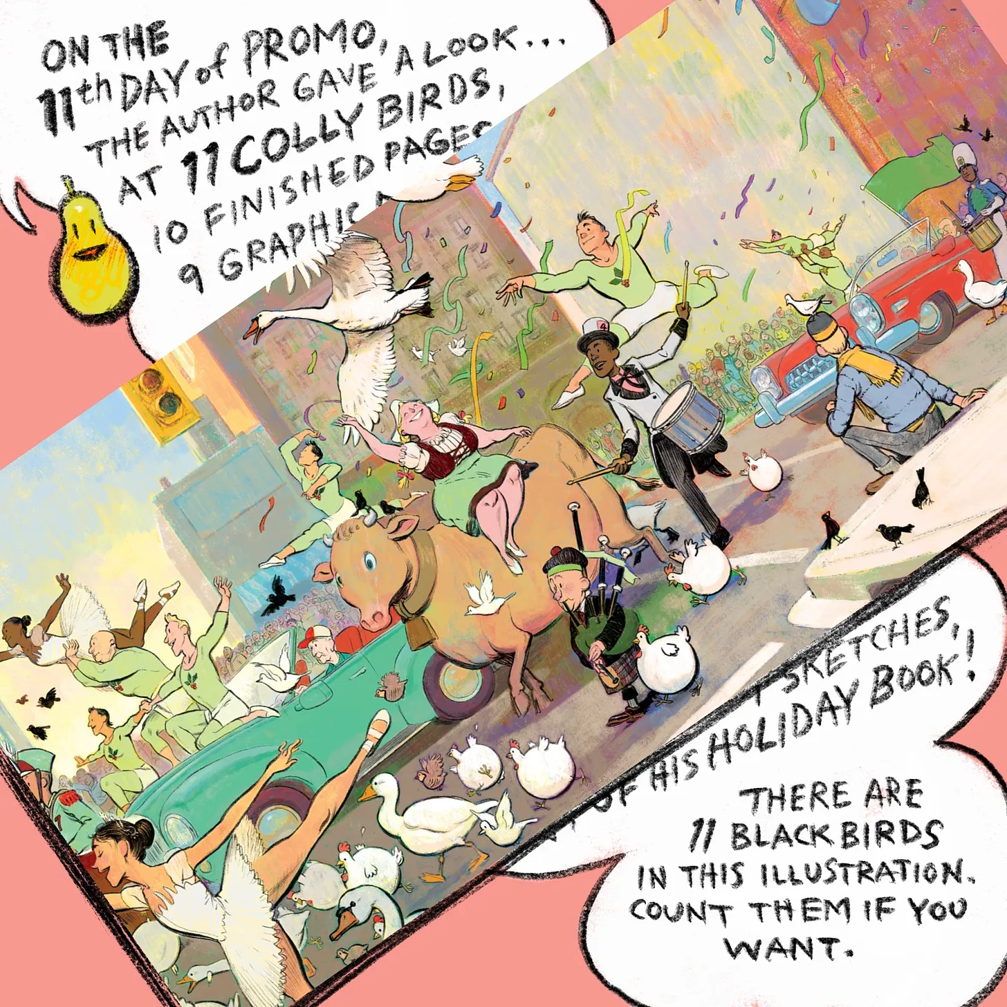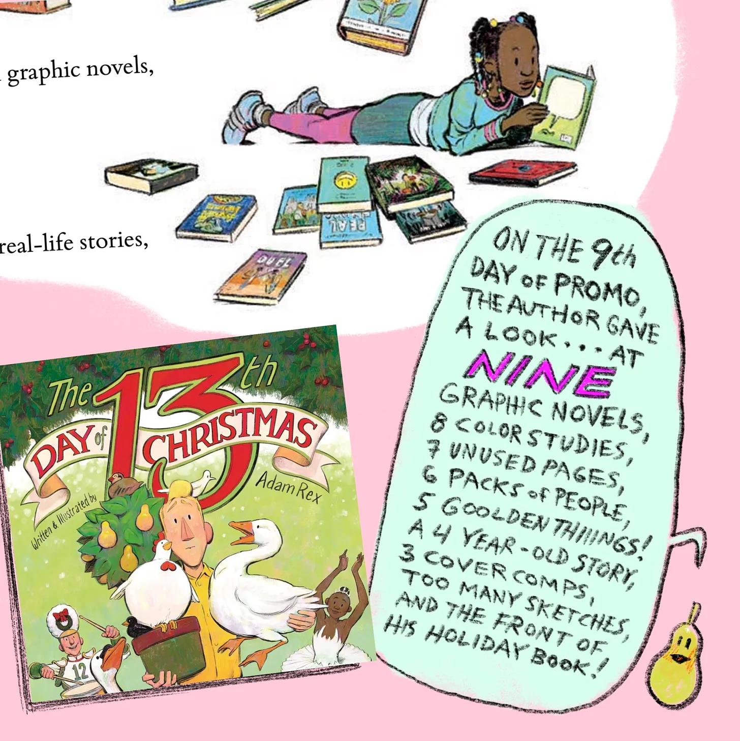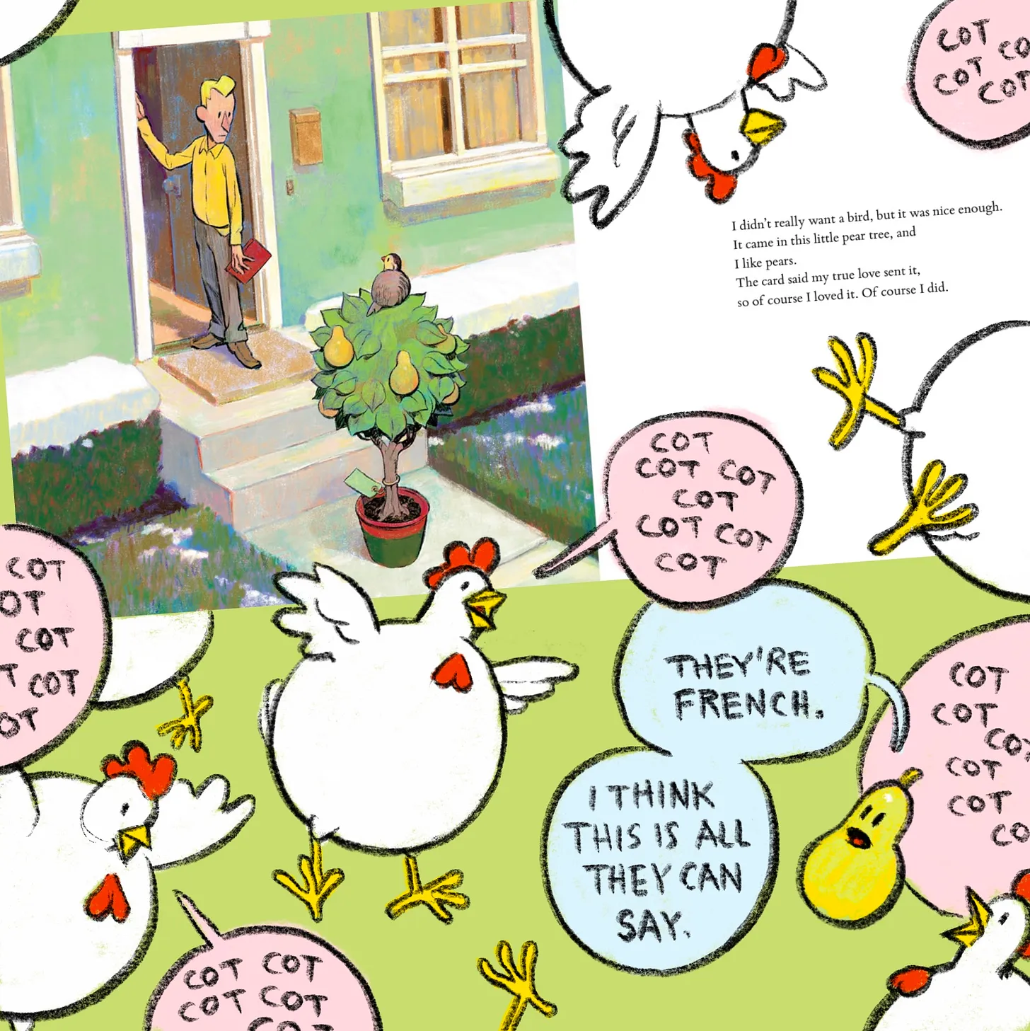 Now my friend, bestselling author-illustrator Adam Rex, has a funny new picture book out that asks: What happens next for the person whose true love got them all those presents for twelve days? How do they deal with all those lords a-leaping and drummers drumming after Christmas?