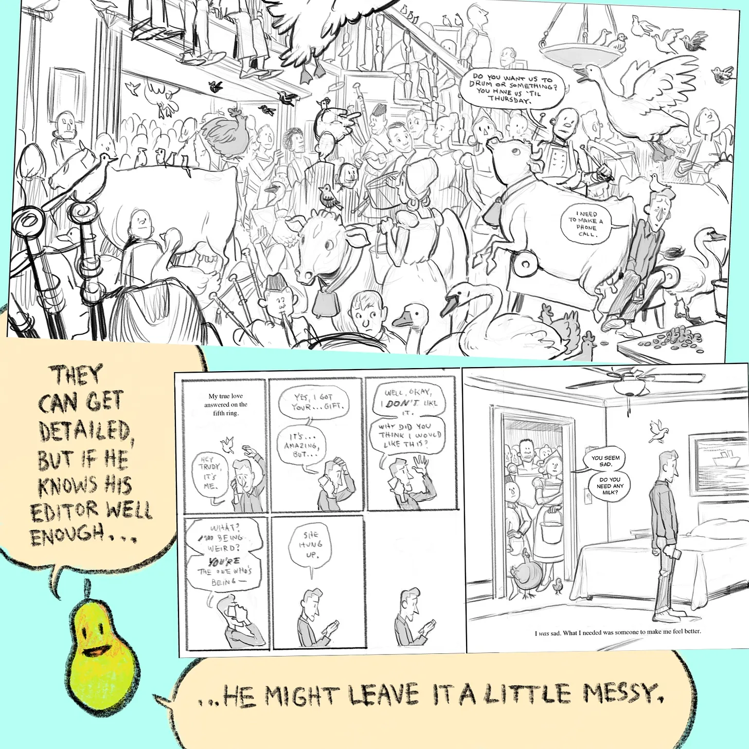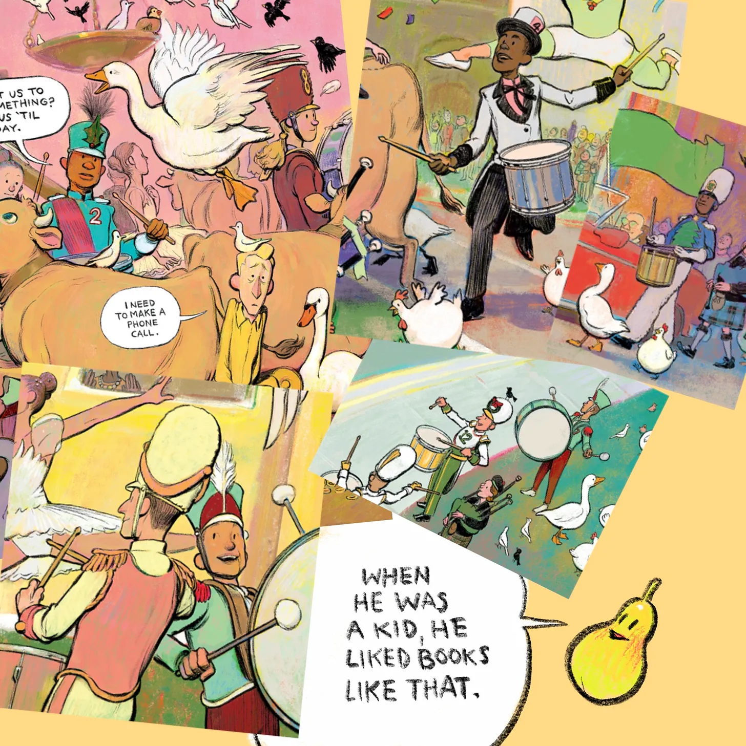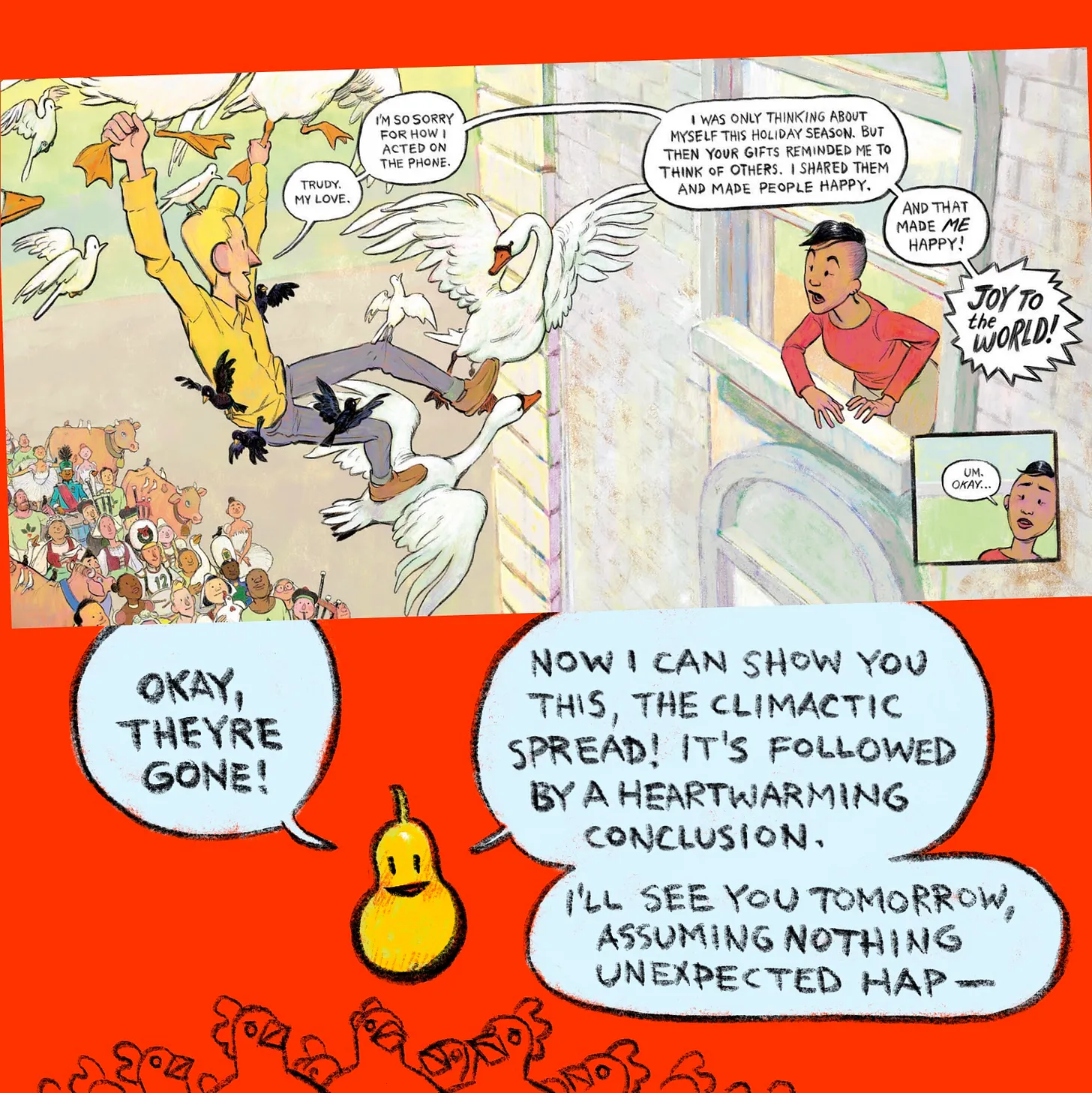 Now my friend, bestselling author-illustrator Adam Rex, has a funny new picture book out that asks: What happens next for the person whose true love got them all those presents for twelve days? How do they deal with all those lords a-leaping and drummers drumming after Christmas?