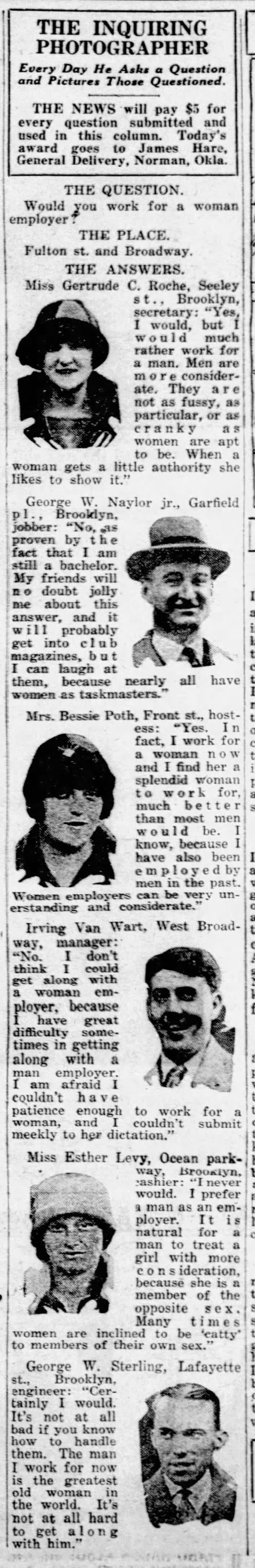 Jimmy would carry his camera around New York City, stopping people to take their photo and ask them questions. They could be about current events, politics, or just trivial matters. In his very first column, he asked, “Should a wife believe the things she hears her husband say in his sleep?”